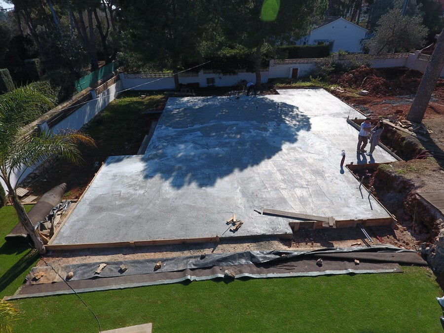 1. Replanteo de la losa de cimentación una vez preparada y desbrozada la parcela.