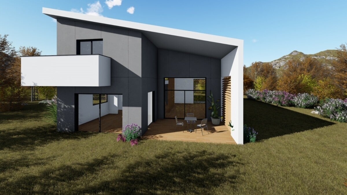 Os presentamos esta maravillosa vivienda modular en dos plantas y 160m2, con cubierta inclinada a un agua.