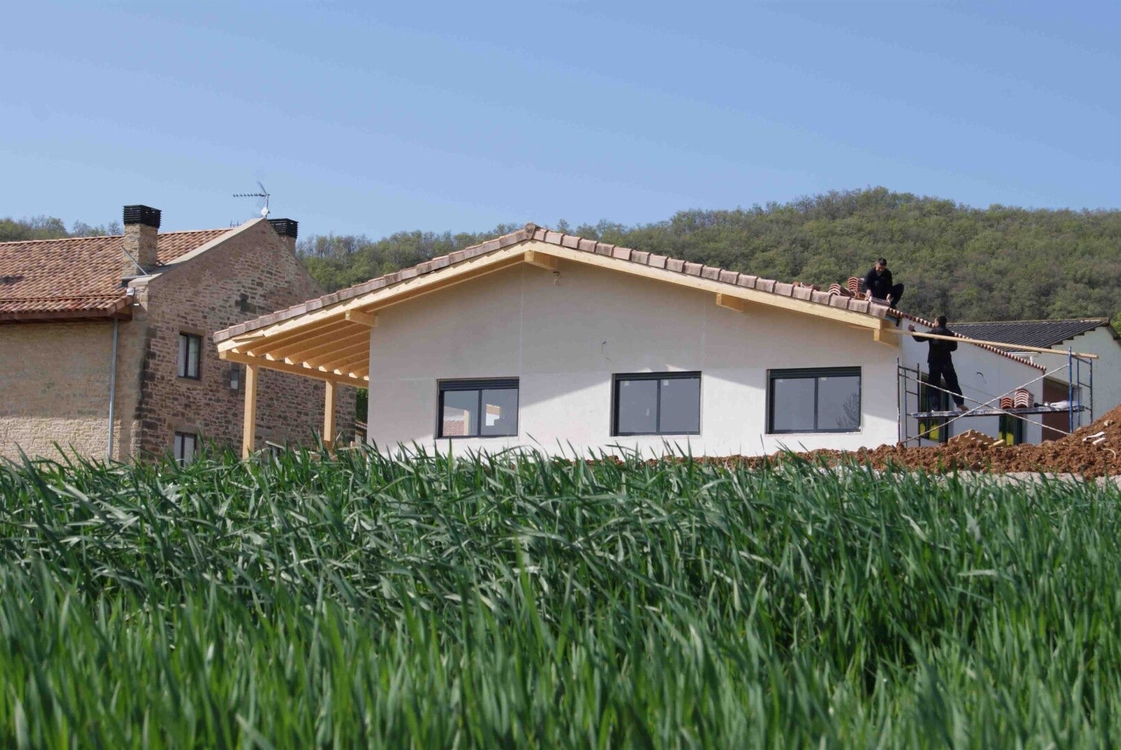 Vivienda de 130 m2 en una sola planta con cubierta a dos aguas acabada en teja mixta envejecida. Se trata de una vivienda muy especial para nosotros ya que fue la primera vivienda que realizamos completa. Se trata de una vivienda de 3 dormitorios dobles con 2 baños completos. Tiene ya 11 años y esta así de bonita.
