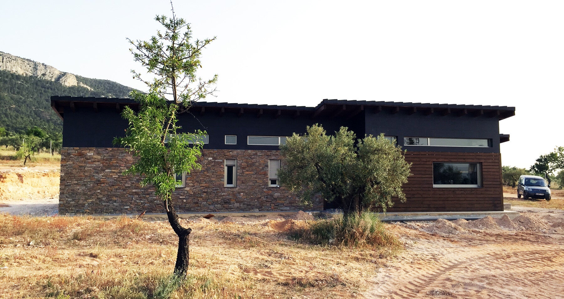 Fantástica vivienda de 160m2 en una sola planta. Ubicada en una parcela rustica. Hemos diseñado y construido esta preciosa vivienda para que se adapte al 100% a su entorno. Con una cubierta inclinada a un agua acabada en teja plana negra y fachada ventilada combinada en piedra natural, madera y cerámica. Desde 180.800€ mas IVA llave en mano, incluida cimentación, honorarios técnicos, transporte y montaje