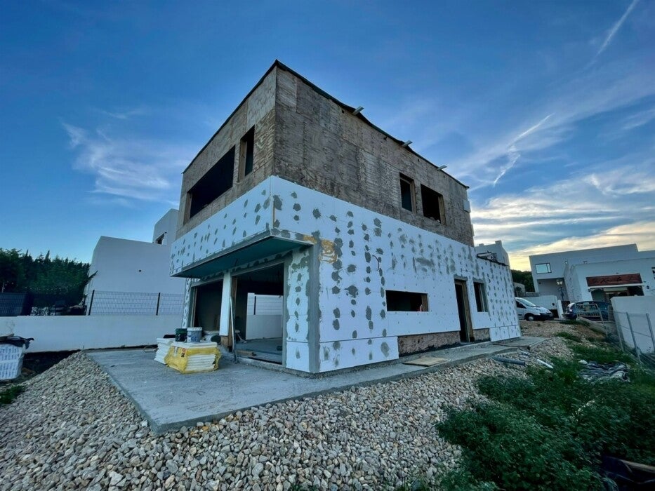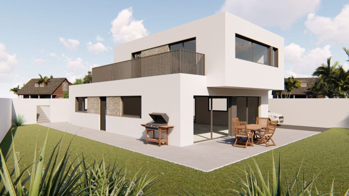 Vivienda de 220 m2 en dos plantas terminada exteriormente en Sate blanco y piedra local. Esta fantástica vivienda llama la atención por su sencillez e integración en el entorno. Con tres dormitorios dobles y tres baños completos enormes. Actualmente en construcción.