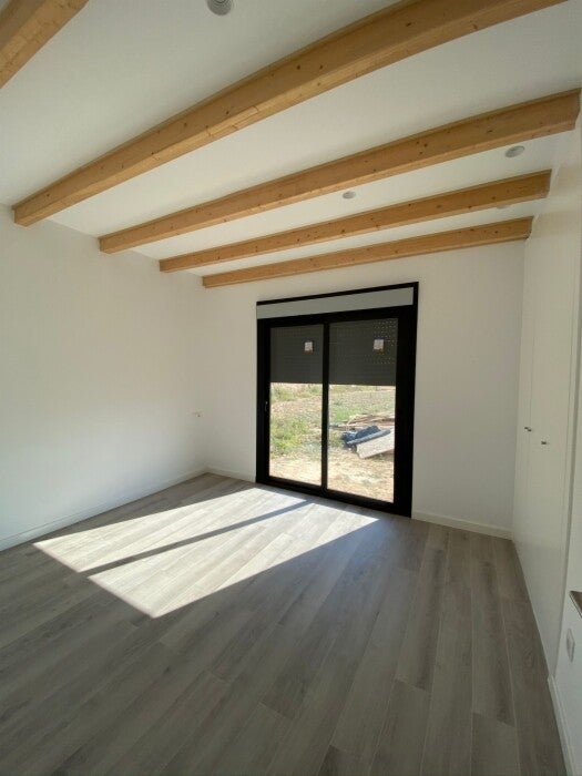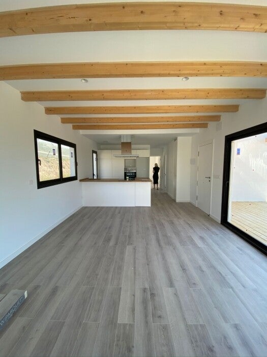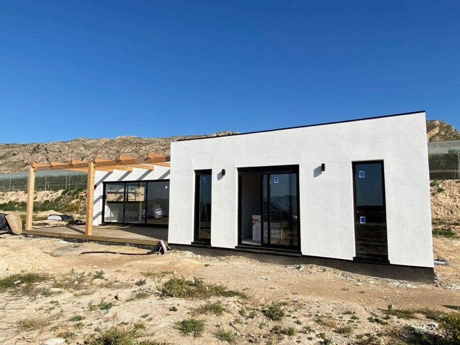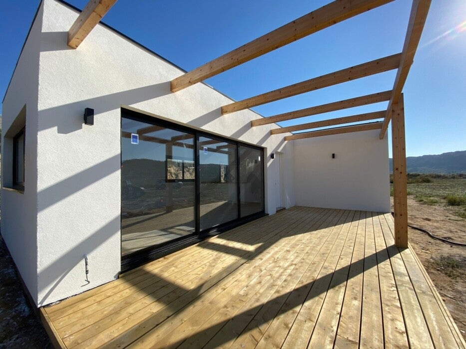 Vivienda de 80 m2 den una sola planta, cubierta plana y fachada que combina el sate blanco con detalles de madera muy típicos nuestros, dotándola de un diseño moderno. La distribución esta pensada para aprovechar al máximo sus 80m2 construidos, con dos dormitorios dobles y dos baños completos. Su precio es de 104.000€ mas IVA llave en mano.