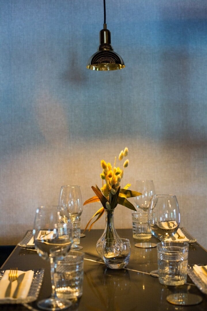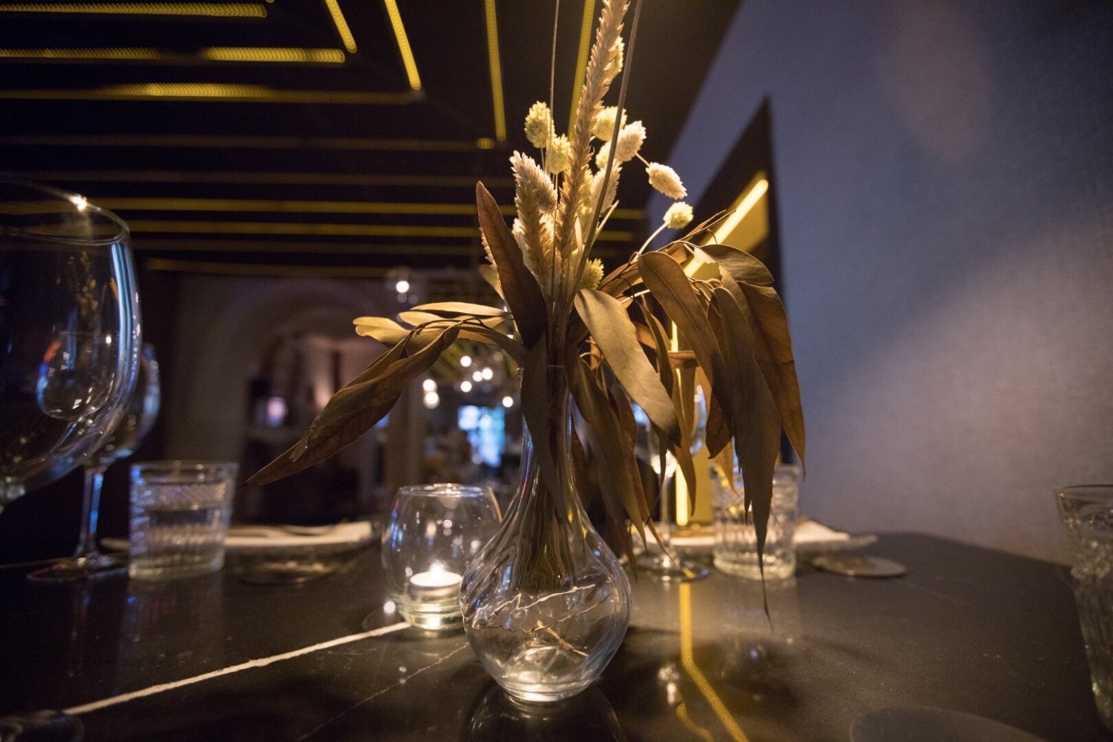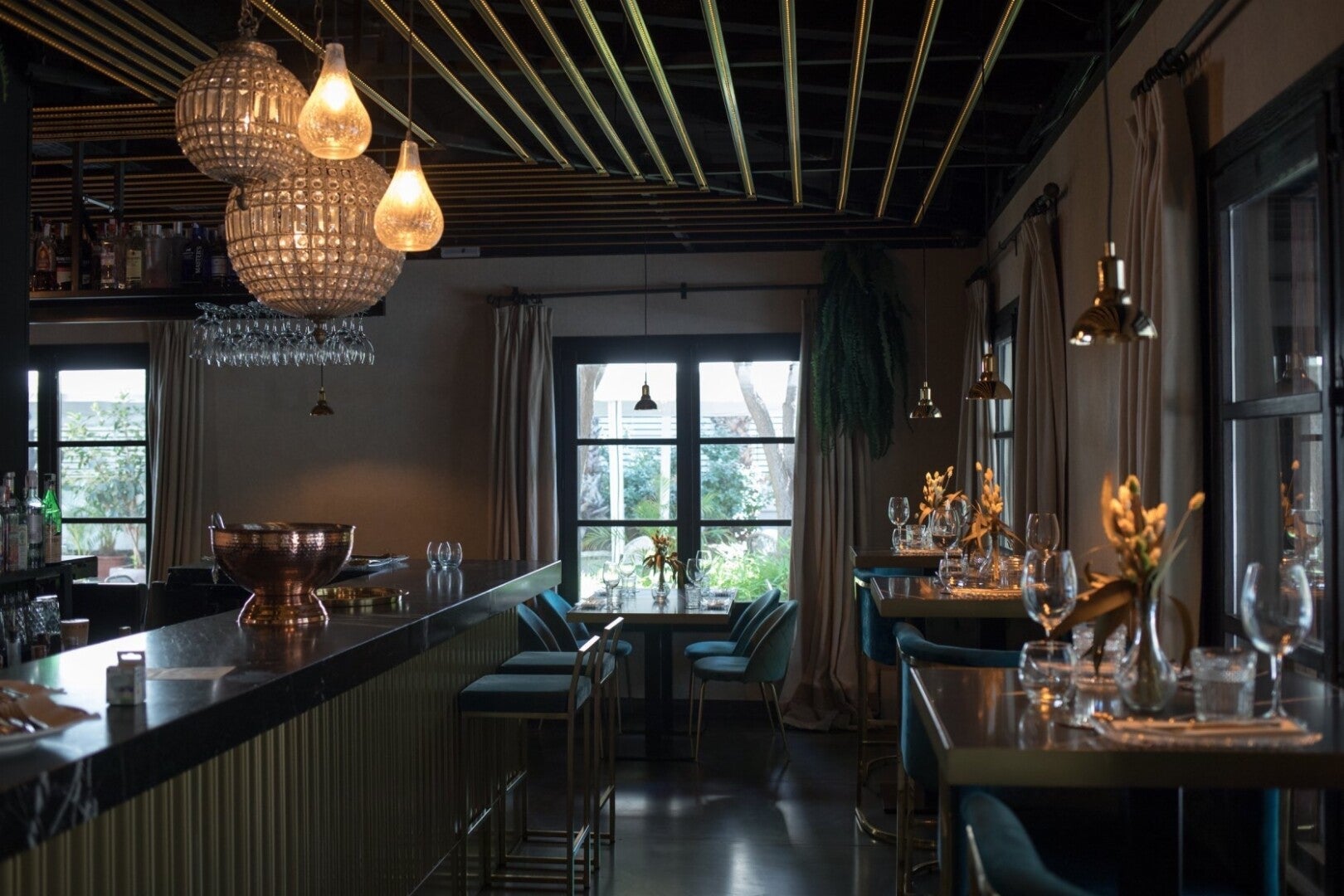 Todos los elementos se han hecho a medida, desde las mesas hasta las barras. Jugando con chapa, terciopelo, espejos, iluminación y el broche final: EL TECHO. Un juego de iluminación único diseñado en exclusiva para Mauro y que está inspirado y rinde homenaje al famoso local neoyorkino Studio 54.